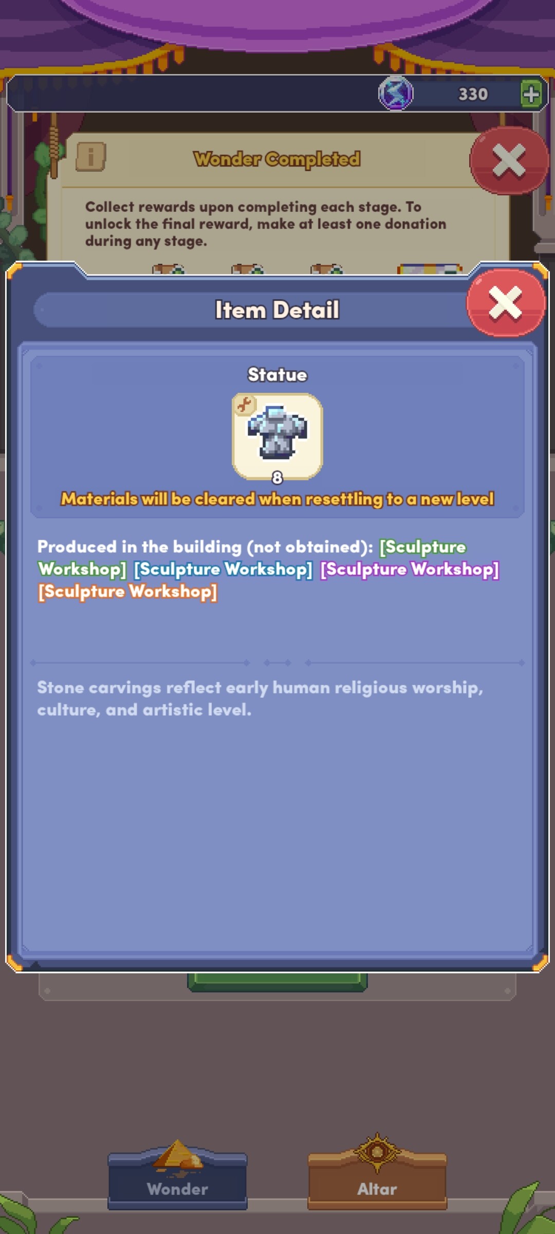 where can i get statue to finish my wonder. I’ve draw so many times, but didn’t get any of that (sculpture)